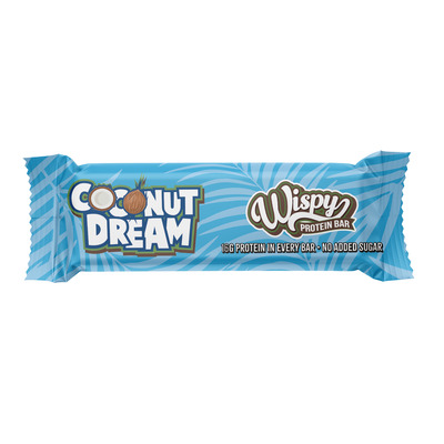 Wispy Protein Bar Coconut Dream er en uimodståelig snack med en eksotisk kokossmag, perfekt til dig, der ønsker et nærende mellemmåltid med højt proteinindhold. Med sine 55 gram og høje indhold af protein er denne bar ideel til at støtte muskelopbygning og restitution, uanset om du er på farten eller efter træning. Coconut Dream smelter på tungen og kombinerer en fyldig kokossmag med en blød konsistens, som tilfredsstiller selv den mest krævende smagselsker. Wispy Protein Bar er et godt valg, når du har brug for en velsmagende snack, der er let at tage med overalt. Med denne proteinbar får du både velsmag og ernæring i én praktisk pakke.