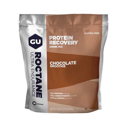 GU Energy Labs Roctane Recovery Chocolate Smoothie er en velsmagende proteindrik. Med sin rige chokoladesmag og nærende ingredienser er denne drik ideel til at efter træning. Hver portion indeholder en blanding af proteiner, kulhydrater og elektrolytter.