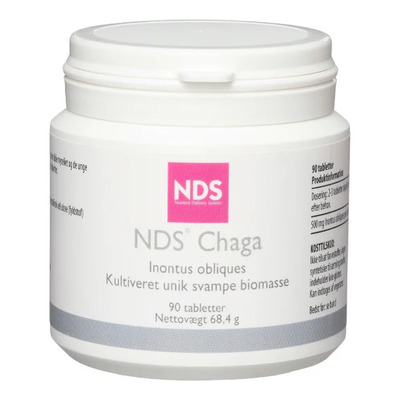 NDS Chaga er et svampekosttilskud på tabletform med et minimum af hjælpestoffer. Kosttilskuddet er baseret på biomasse fra svampen Inontus Obliques og ikke ekstrakt, hvilket betyder, at de aktive stoffer er beskyttet gennem maven og først frigøres øverst i tyndtarmen. Den bestemte produktionsmåde, hvor unge svampe rendyrkes og skånsomt tørres, bidrager til at holde ingredienserne intakt.